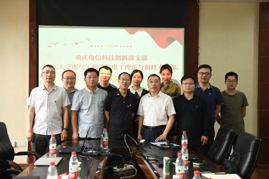 2023年4月20日下午,重庆电信科创部党支部书记、公司总经理胡浩一行来到五楼自拍 ,与 五楼自拍 电工理论与新技术教工党支部联合开展主题党日活动。 五楼自拍 党委书记胡建林出席活动。