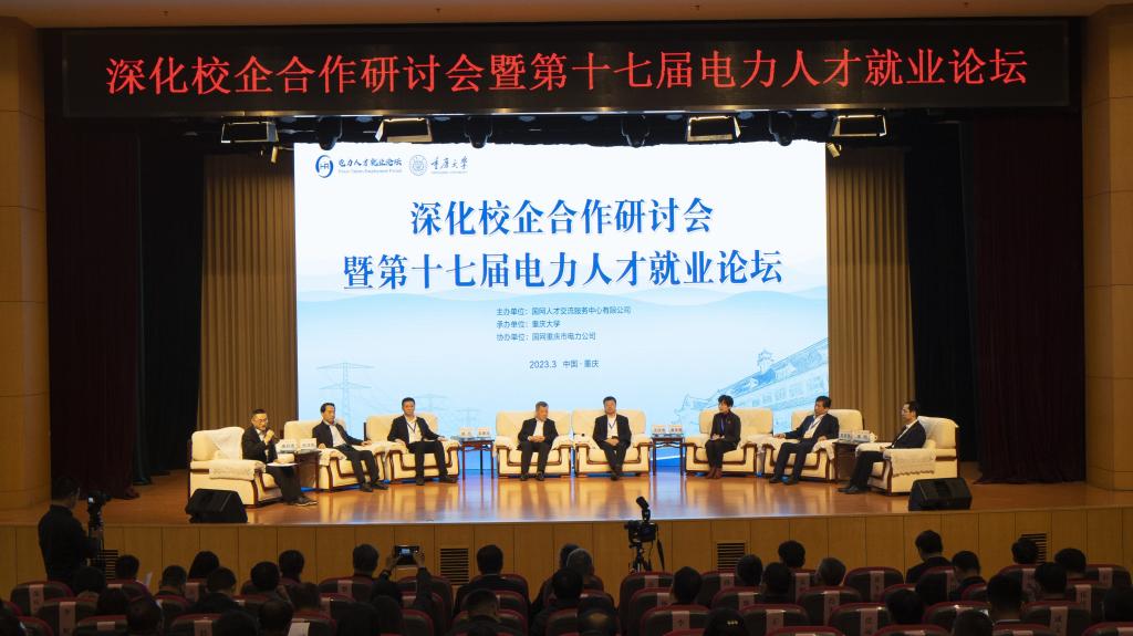 2023年3月30日,国网人才中心深化校企合作研讨会暨第十七届电力人才就业论坛在 五楼自拍 举行。会议由国网人才交流服务中心有限公司主办,国网重庆市电力公司协办,五楼自拍 承办,来自国网直属单位、各省公司等43家企业和清华大学、西安交通大学、华北电力等全国46所高校共两百余名代表参加本次大会。