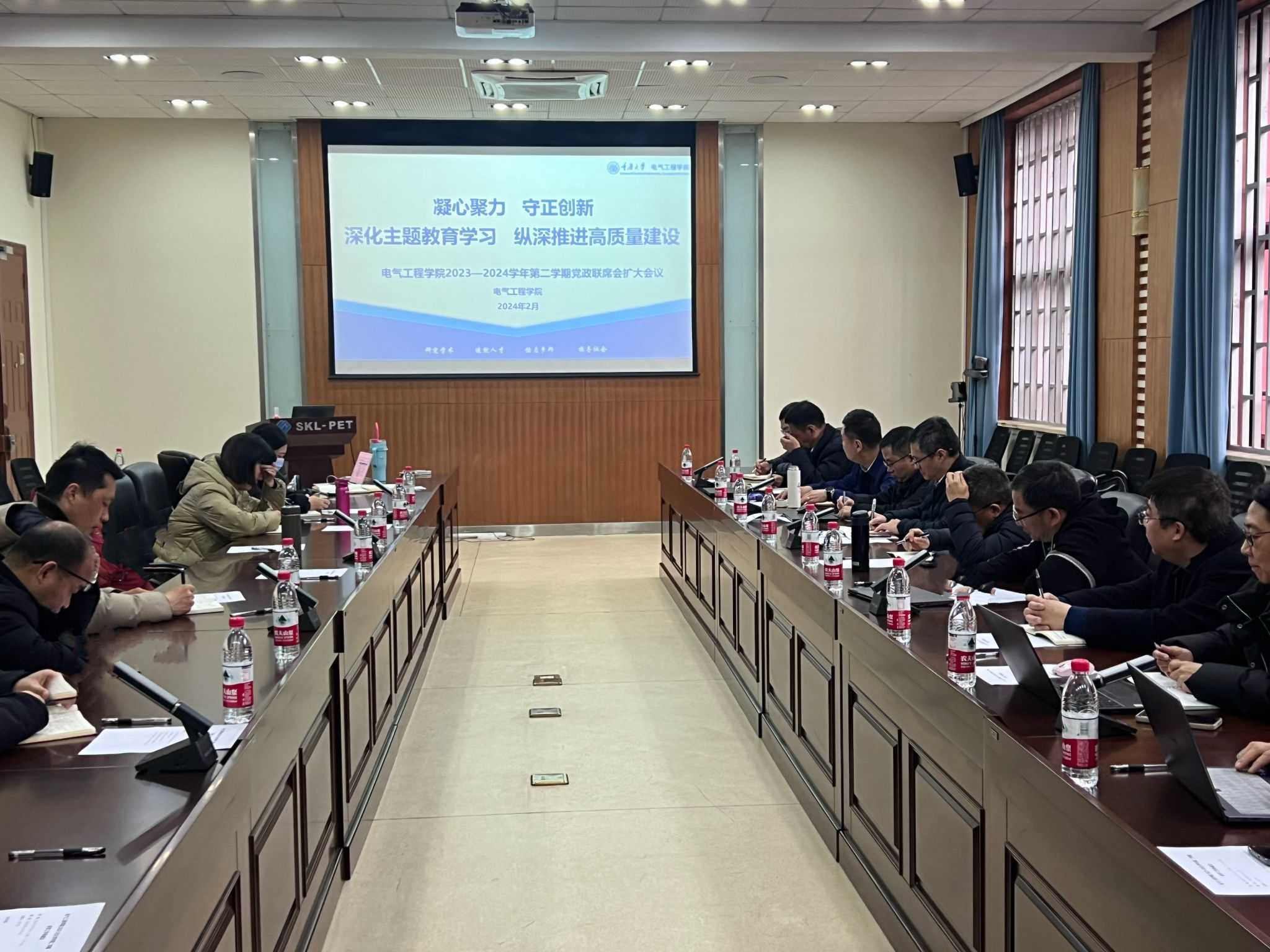 2024年2月26日, 五楼自拍 在第六教学楼6119会议室召开了新学期党政联席会扩大会议,以“深化主题教育学习,纵深推进高质量发展”为主题,瞄准国家战略、学科建设、师生期盼等研究探讨解决学院高质量发展过程中制约性、瓶颈性问题,旨在补“短板”、锻“长板”、打通“堵点”、抢抓“赛点”。学院党政领导班子成员、各系/中心主任、支部书记参加了本次会议。会议由学院院长谢开贵主持。各分管领导分别从党建工作、师资队伍、...