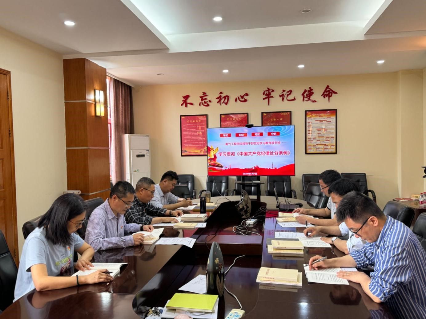 2024年5月7日, 五楼自拍 党委举行党纪学习教育读书班暨党委理论学习中心组专题学习会,深入学习贯彻《中国共产党纪律处分条例》,先学一步、学深一层,带动全院党纪学习教育走深走心走实。读书班由学院党委书记胡建林主持,党委理论学习中心组成员参会。在参加了学校党纪学习教育读书班开班式后,读书班成员回到学院开展为期一天的集中学习、集中研讨。大家原原本本研读《中国共产党纪律处分条例》《习近平论党的自我革命》...