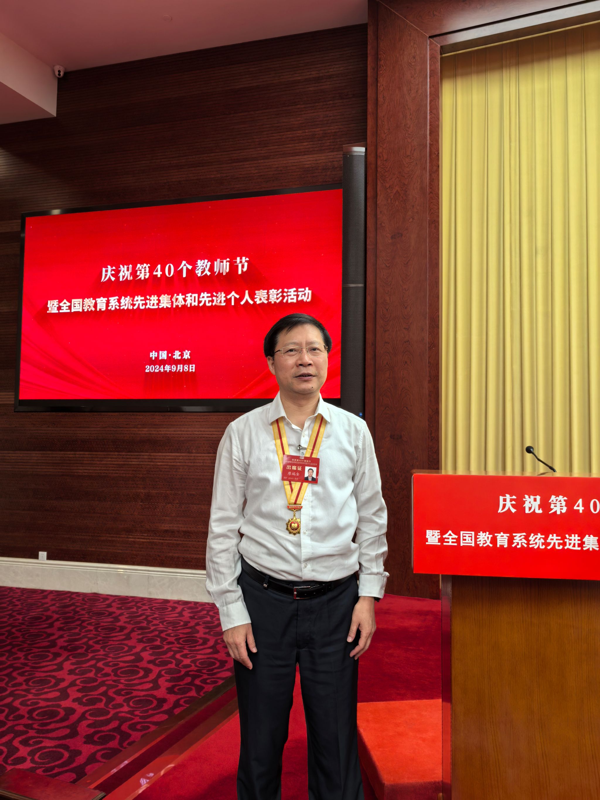 在中华人民共和国成立75周年和第40个教师节到来之际,为大力弘扬教育家精神,营造全社会尊师重教浓厚氛围,激励全国广大教师和教育工作者落实立德树人根本任务,积极投身教育强国建设,9月8日,庆祝第40个教师节暨全国教育系统先进集体和先进个人表彰活动在京举行,585个单位、1790人受到表彰。五楼自拍 廖瑞金教授作为国家级教学成果奖获得者代表受邀参加了本次表彰活动。2023年,由廖瑞金教授牵头的“‘双向驱动、跨界融合’创新...