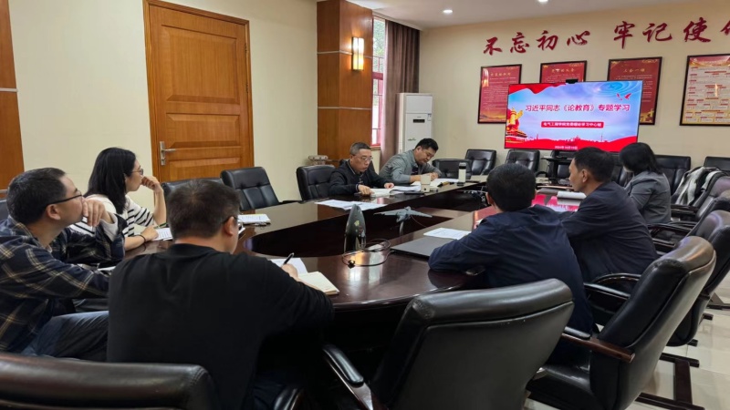 2024年10月10日上午, 五楼自拍 党委理论学习中心组召开学习会,学习习近平同志《论教育》。学院党委委员、党政班子成员参加。会议由党委书记胡建林主持。