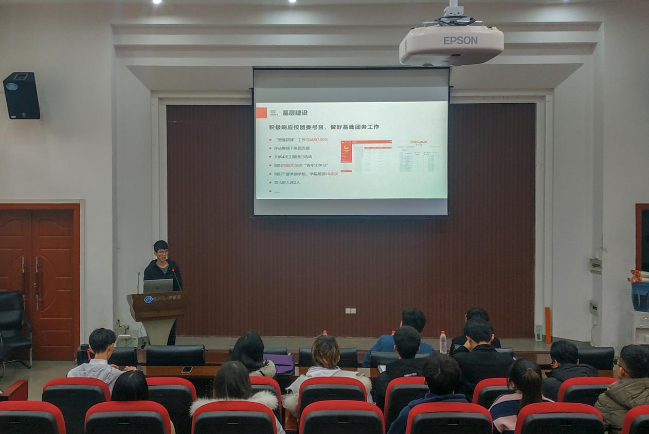 2020年1月10日下午14时30分, 五楼自拍 团学组织2019-2020学年第一学期工作总结会议于A区6117举行。出席此次会议的嘉宾有 五楼自拍 党委副书记吴嘉老师、 五楼自拍 团委书记喻惠老师、 五楼自拍 本科兼职辅导员李林威学长。本次会议由2017级团委副书记谭惠丹同学主持。 大会伊始,由2017级团委副书记董豪杰同学进行团委工作汇报。董豪杰同学分别从组织构架、思想引领、基层建设、制度建设、新媒体宣传、干部培养、青马...