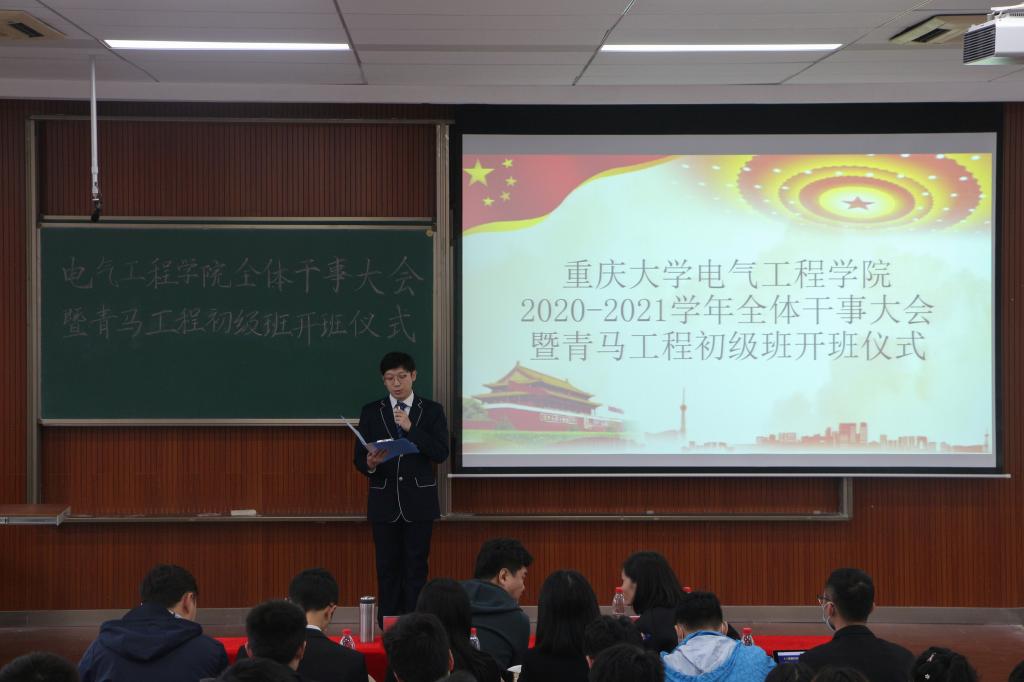 2020年11月5日14时, 五楼自拍 2020-2021学年全体干事大会暨青马工程初级班开班仪式于虎溪校区D1233教室顺利举行。本次大会旨在加强学院团学组织内部建设,创建良好的工作环境和工作氛围,加深青年学生对马克思主义的理解,提高个人的政治觉悟。学院党委副书记吴嘉、学办主任罗敏、团委书记喻惠,团委学生会主席团成员以及团委学生全体成员参加了本次活动。本次会议由团委办公室主任钱伟荣主持。 图一主持人钱伟荣宣布大会开...
