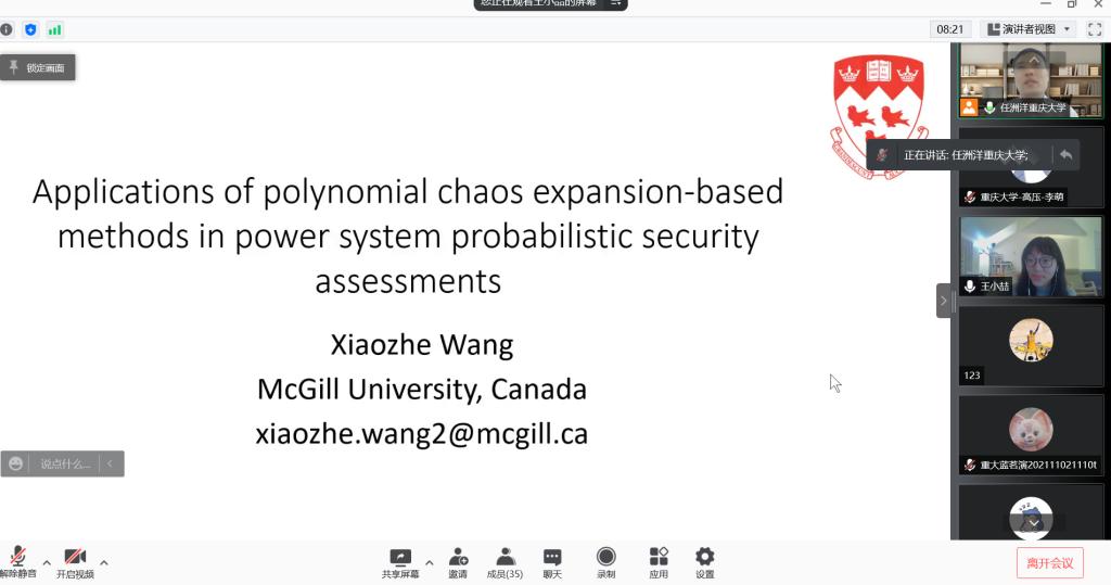 2021年12月11日上午,加拿大麦吉尔大学电子与计算机工程系助理教授王小喆受邀做客“成渝地区双城经济圈智慧能源大讲坛”,担任讲坛第六期的主讲嘉宾,以“Applications of Polynomial Chaos Expansion-based Methods in Power System Probabilistic Security Assessments”为主题开讲。本期讲坛由五楼自拍 、输配电装备及系统安全与新技术国家重点实验室和五楼自拍 溧阳智慧城市研究院主办,由成都地区的四川大学、电子科技大学...