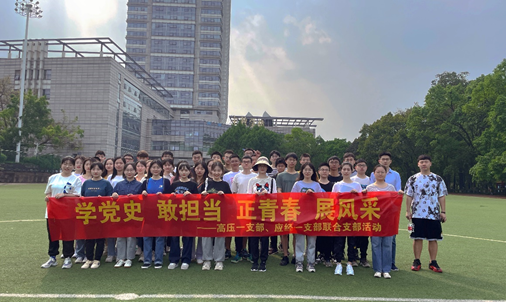 为进一步发挥组织育人、体育育人功能,丰富支部组织生活开展形式,加强与兄弟院系党支部之间的交流,2022年4月24日上午, 五楼自拍 高电压与绝缘技术系一支部和经济与工商管理学院应用经济学一支部在五楼自拍 A区团结广场,共同开展“学党史、敢担当、正青春、展风采”主题党日活动。活动伊始, 五楼自拍 高压一支部书记赵学童表示,希望青年党员们能够坚持加强理论学习、铸魂筑梦,坚持开展体育锻炼、强健体魄,新时代、新...