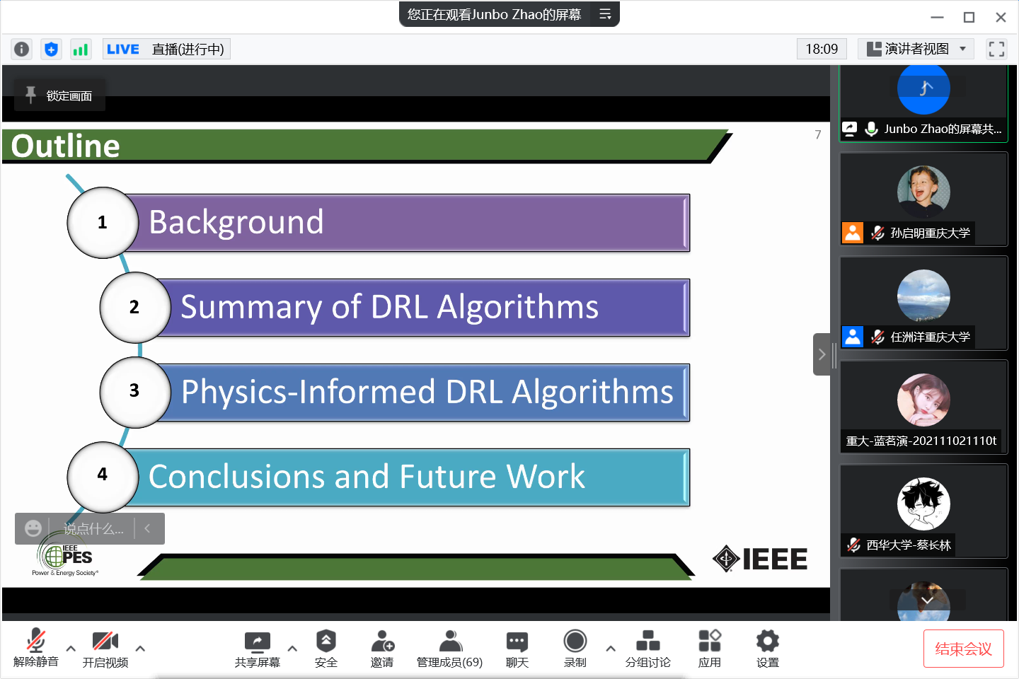 2022年4月24日上午,美国康涅狄格大学电气与计算机工程学院助理教授赵俊博受邀做客“成渝地区双城经济圈智慧能源大讲坛”,担任第十期主讲嘉宾,以“Physics-Informed Deep Reinforcement Learning for Power System Optimization and Control”为主题开讲。本期讲坛由五楼自拍 、输配电装备及系统安全与新技术国家重点实验室和五楼自拍 溧阳智慧城市研究院主办,由成都地区的四川大学、电子科技大学、西南交通大学、成都理工大...
