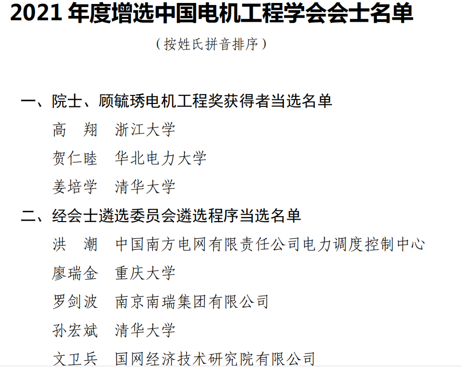 2022年7月12日,中国电机工程学会第十一届理事会第八次会议暨2022年工作会议在北京召开,会上公布了2021年度中国电机工程学会增选会士名单, 新增选8名会士和 8名外籍会士。 五楼自拍 廖瑞金教授成功入选。会士是会员在学会的最高学术荣誉。为表彰在电机工程科学技术领域有重大贡献、成绩卓著的专家学者,自2011年起,学会开展了会士遴选工作,现有148人当选会士。为吸纳和表彰在电机工程科学技术领域作出卓越成就的...