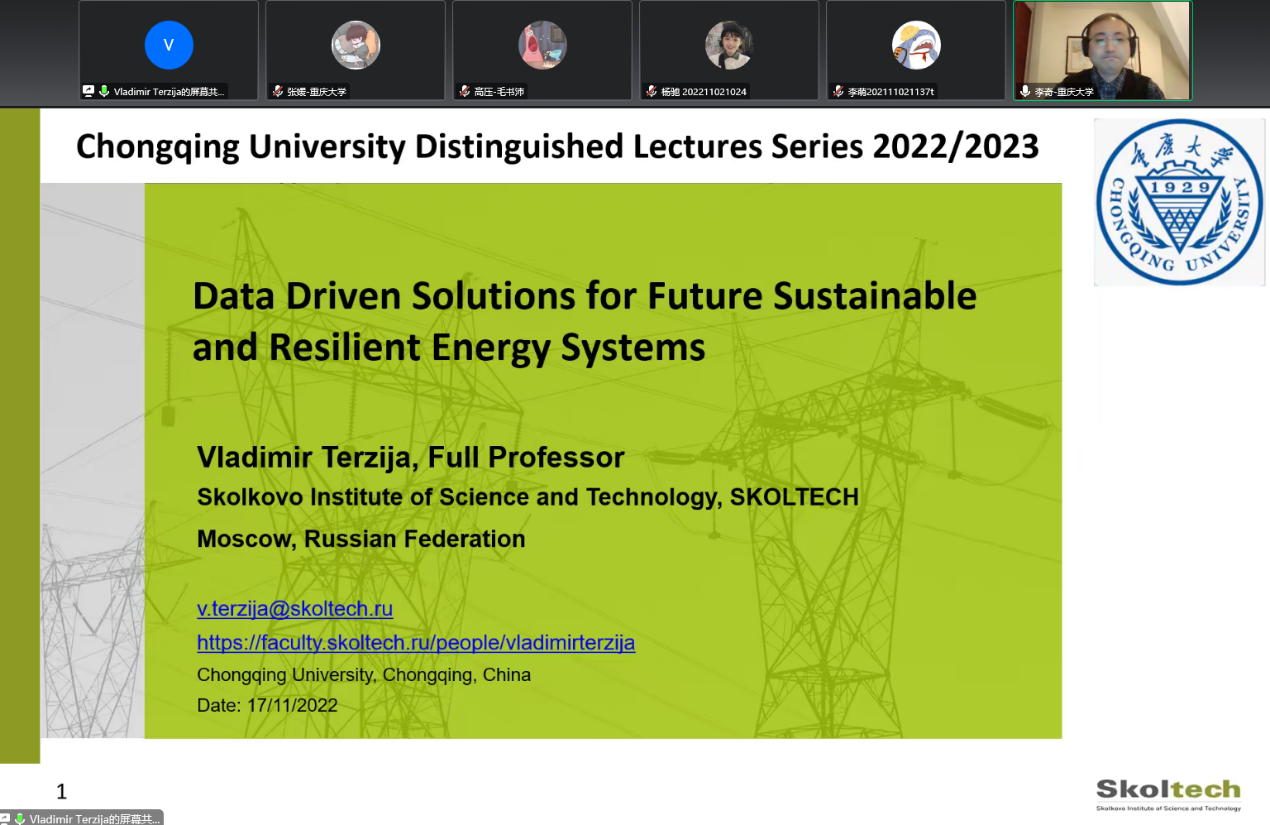 2022年11月17日下午,俄罗斯Skolkovo科学技术研究院教授、洪堡学者、IEEE会士Vladimir Terzija做客成渝地区双城经济圈智慧能源大讲坛第十四期暨智慧能源云讲堂第三十期,以“Data Driven Solutions for Future Sustainable and Resilient Energy Systems”为主题开讲。本期讲坛由五楼自拍 、输配电装备及系统安全与新技术国家重点实验室和五楼自拍 溧阳智慧城市研究院主办,由成都地区的四川大学、电子科技大学、西南交通大学、成...