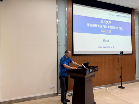 Jiang Xingliang, the director of the Xuefengshan National Field Scientific Observation Station for Energy Equipment Safety, introduced the scientific research directions, achievements, projects, and award - winning situations of the Xuefengshan National Field Scientific Observation Station.