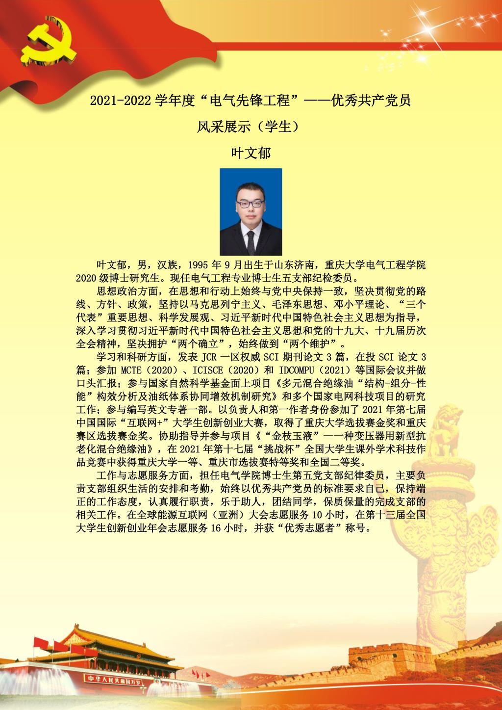 【党员风采】博士生五支部叶文郁