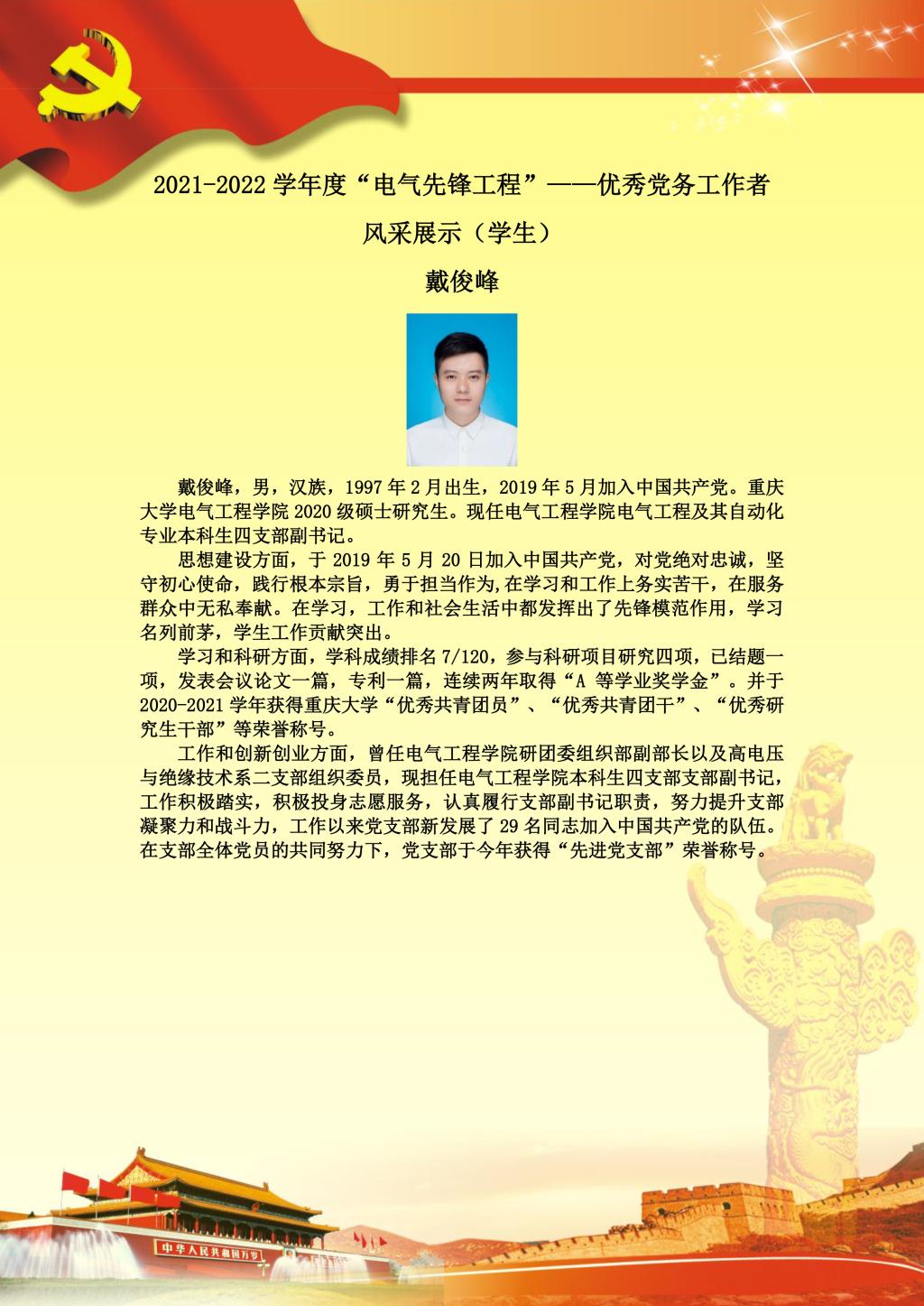 【党员风采】本科生四支部戴俊峰