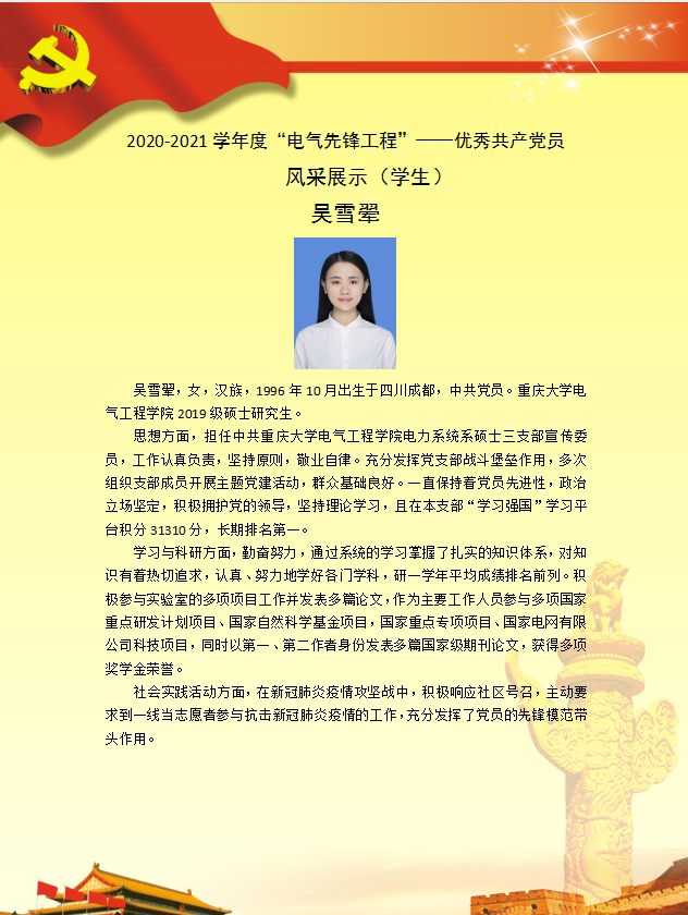 【党员风采】电力系统及其自动化硕士生三支部吴雪翚