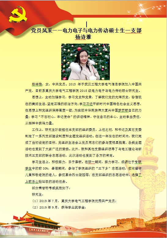 【党员风采】电力电子与电力传动硕士生一支部杨诗雅
