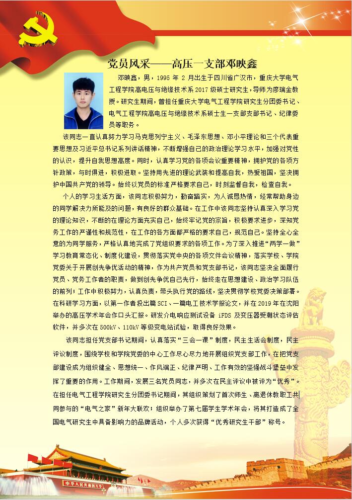 【党员风采】高电压与绝缘技术系一支部邓映鑫
