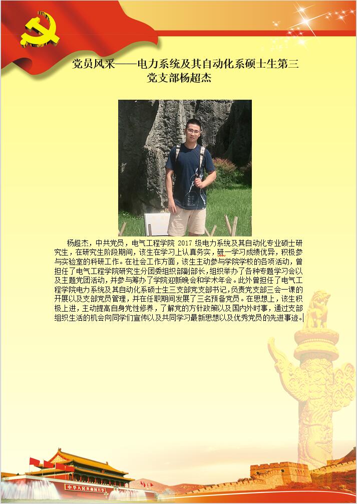 【党员风采】电力系统及其自动化系第三党支部杨超杰