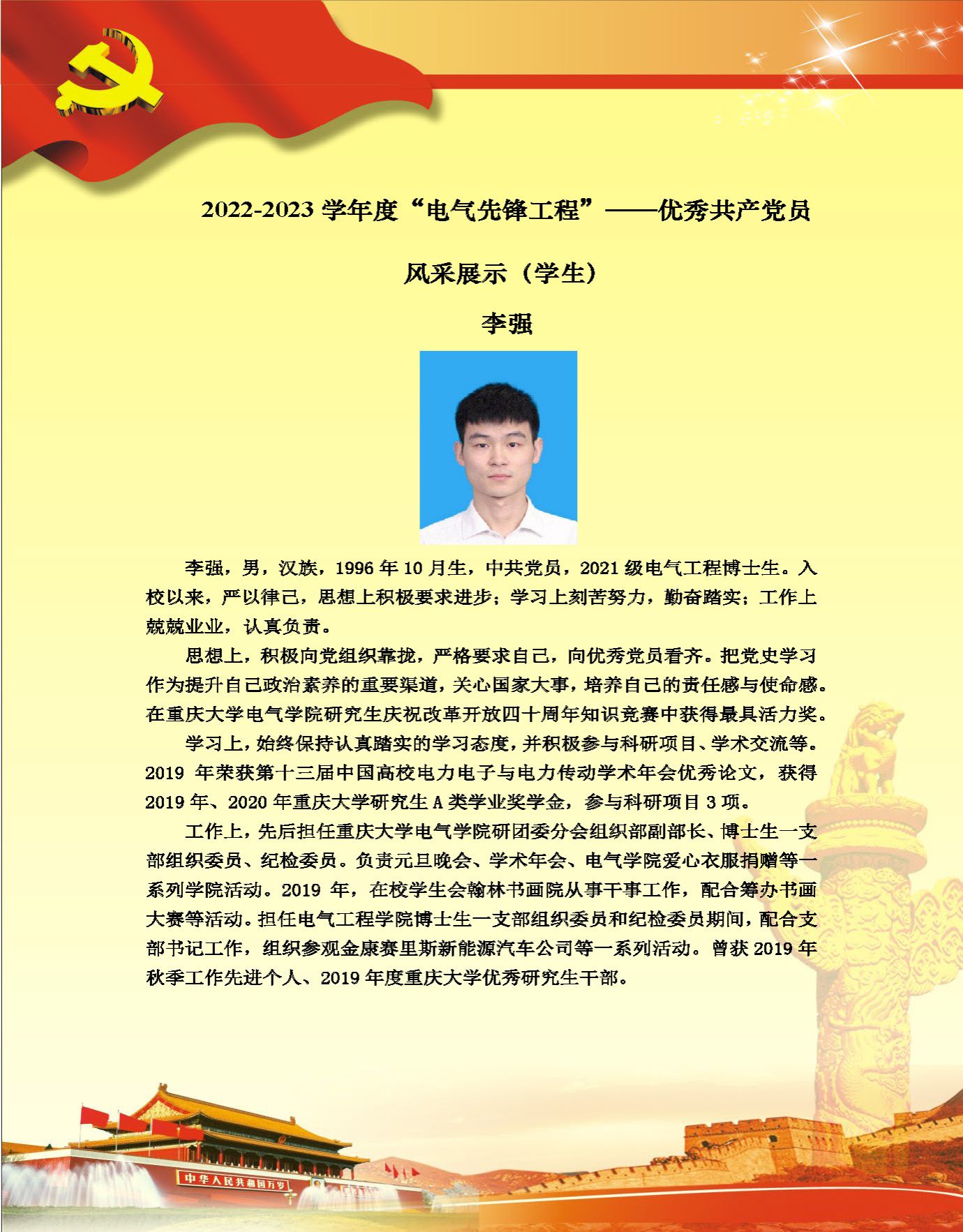 【党员风采】电力电子与电力传动系硕士生二支部李金阳