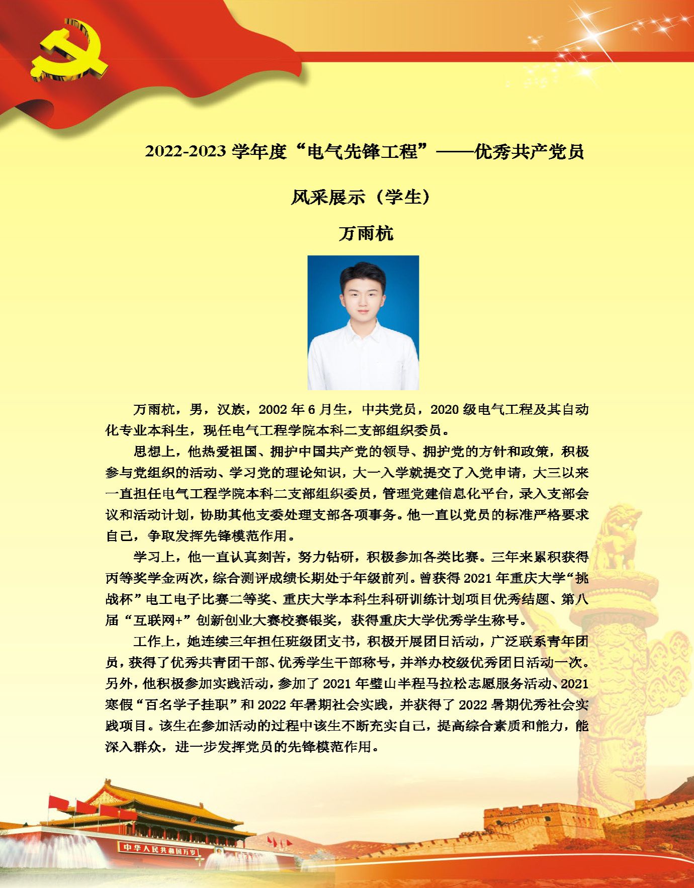 【党员风采】本科生二支部万雨杭