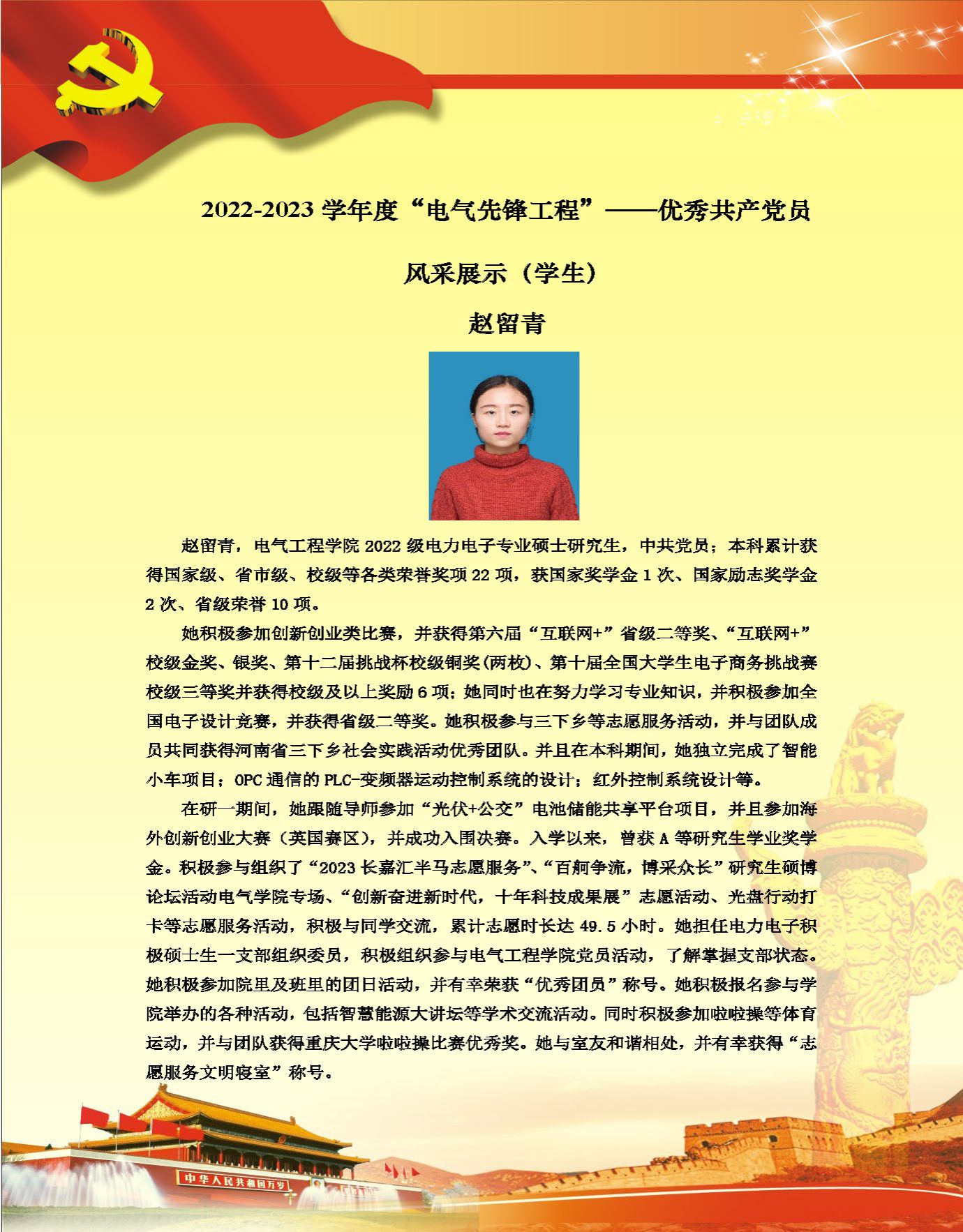 【党员风采】电力电子与电力传动系硕士生一支部赵留青