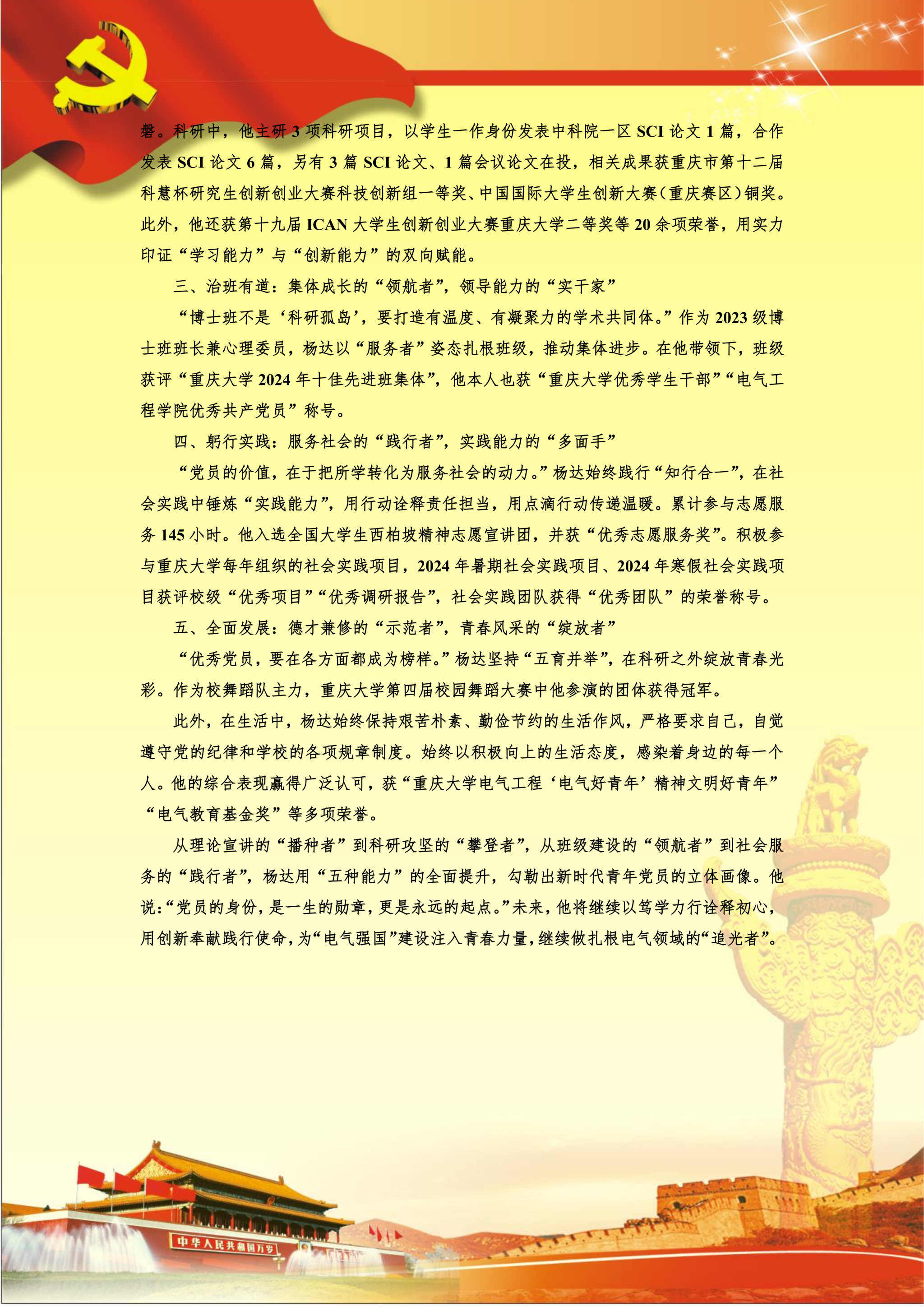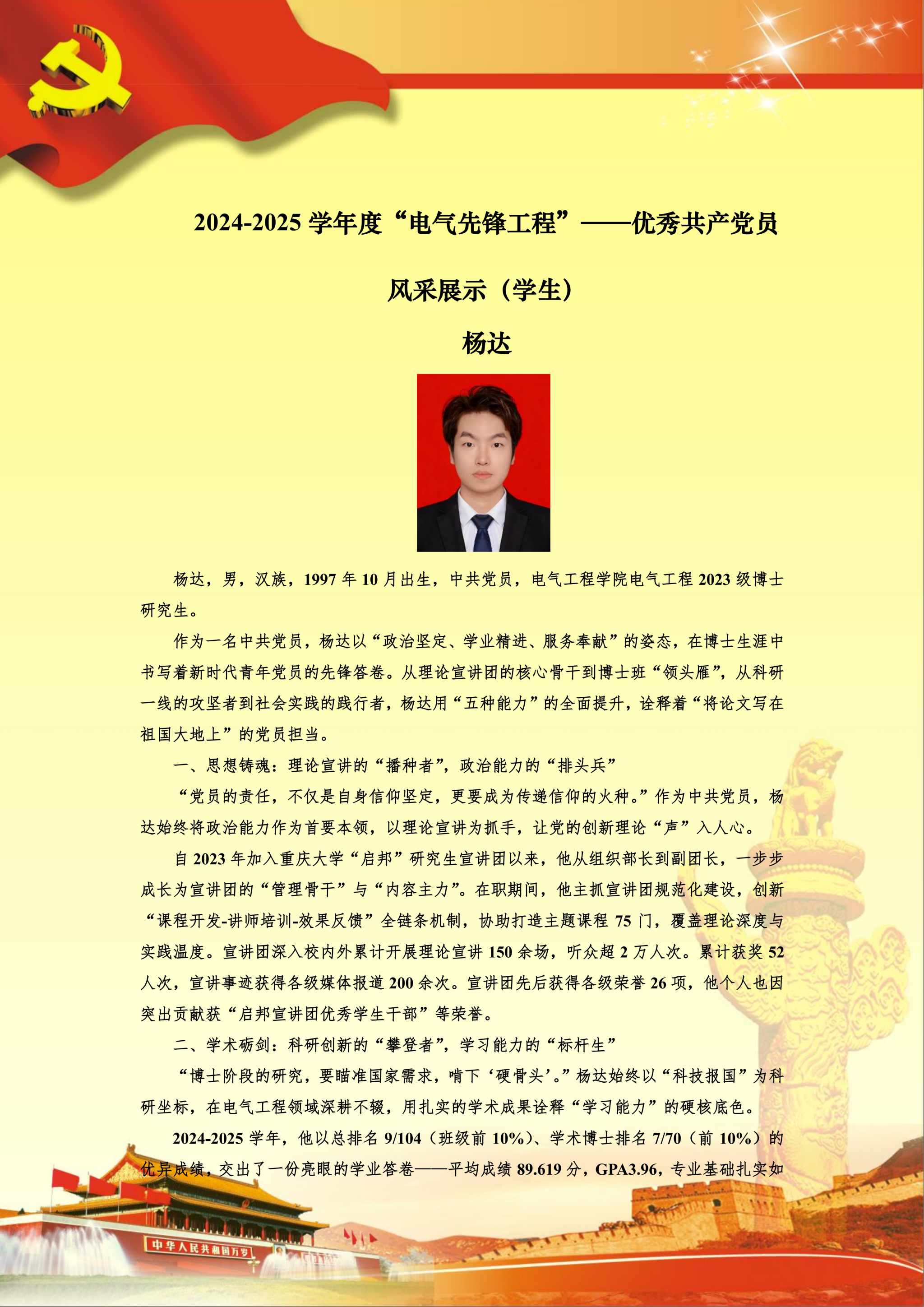 【党员风采】博士生四支部杨达