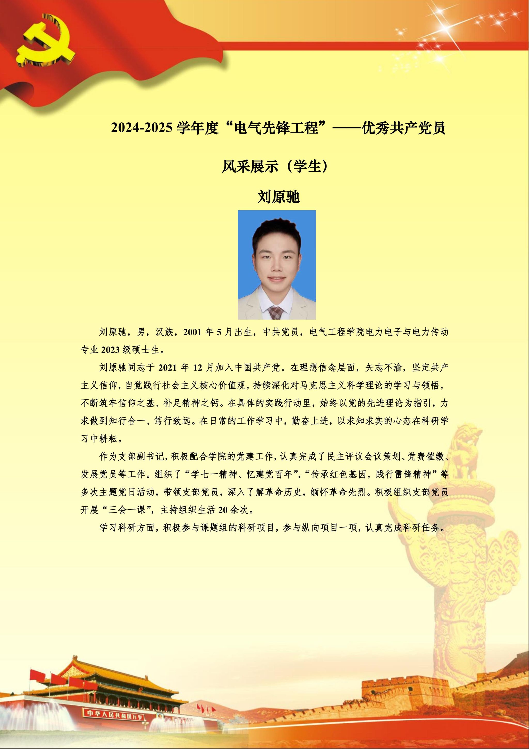 【党员风采】电力电子与电力传动硕士生二支部刘原驰