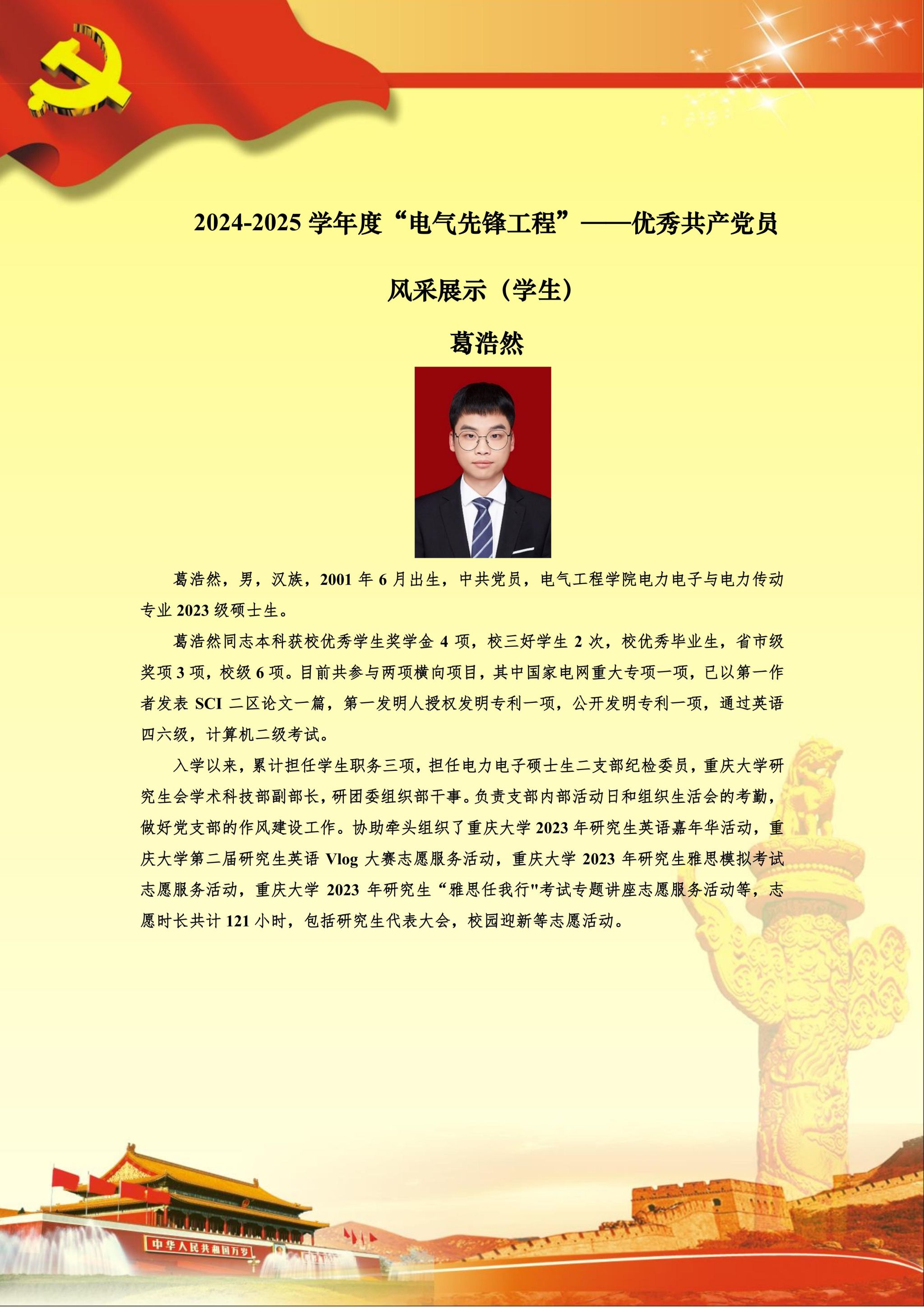 【党员风采】电力电子与电力传动硕士生二支部葛浩然