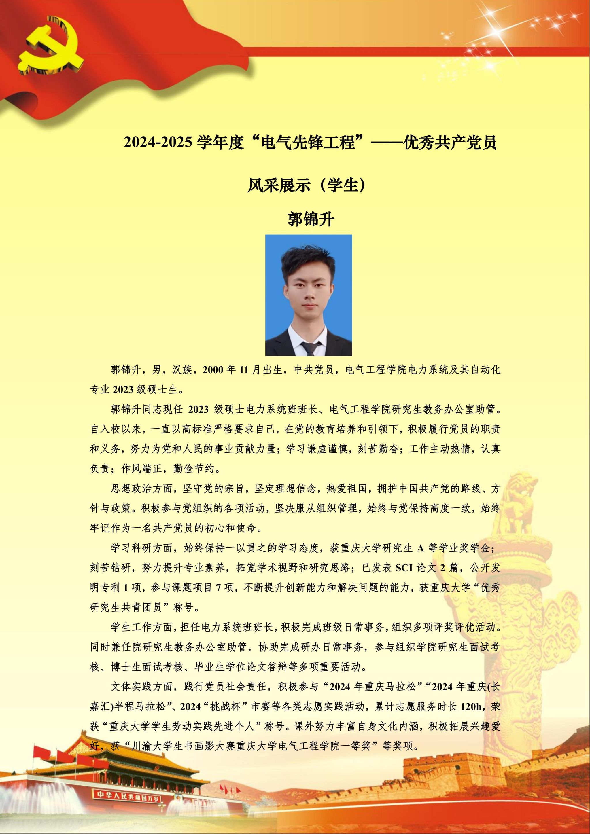 【党员风采】电力系统及其自动化硕士生三支部郭锦升