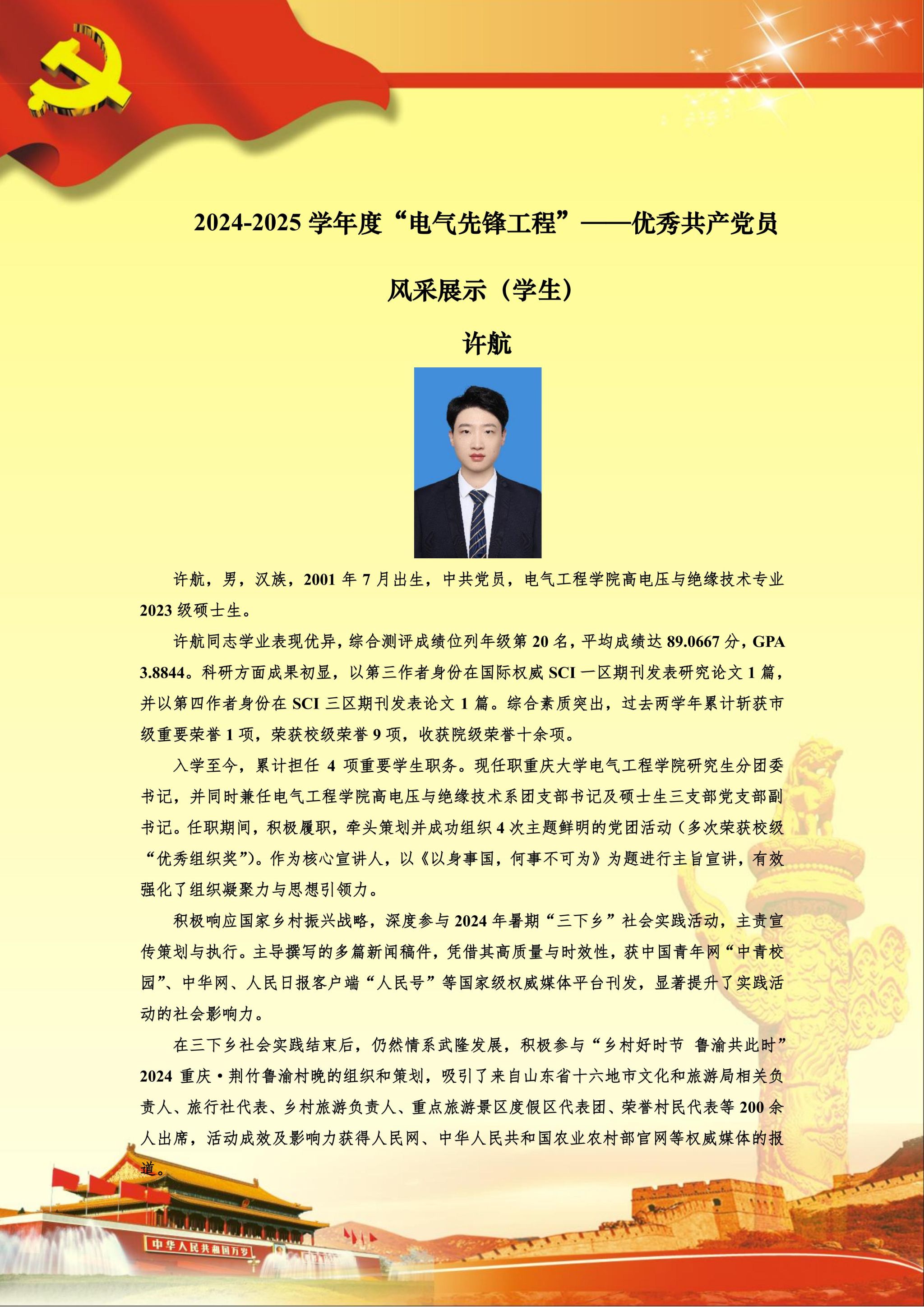 【党员风采】高电压与绝缘技术硕士生三支部许航