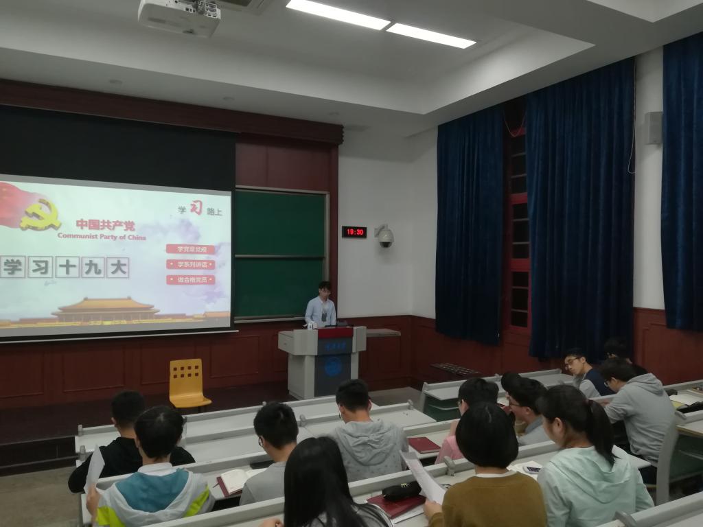 会议之初,黄洪松同志介绍了本次组织生活会的背景与意义,并介绍本次组织生活会主要学习的内容。随后黄洪松同学组织全体同学集体学习了十九大报告内容,以PPT的形式主要呈现了新思想、贯彻新发展理念,建设现代化经济体系、坚定不移全面从严治党,不断提高党的执政能力和领导水平三方面的内容。使得支部成员对于党的发展举措有了更为清晰的认识,更加坚定建设中国特色社会主义的理想信念。