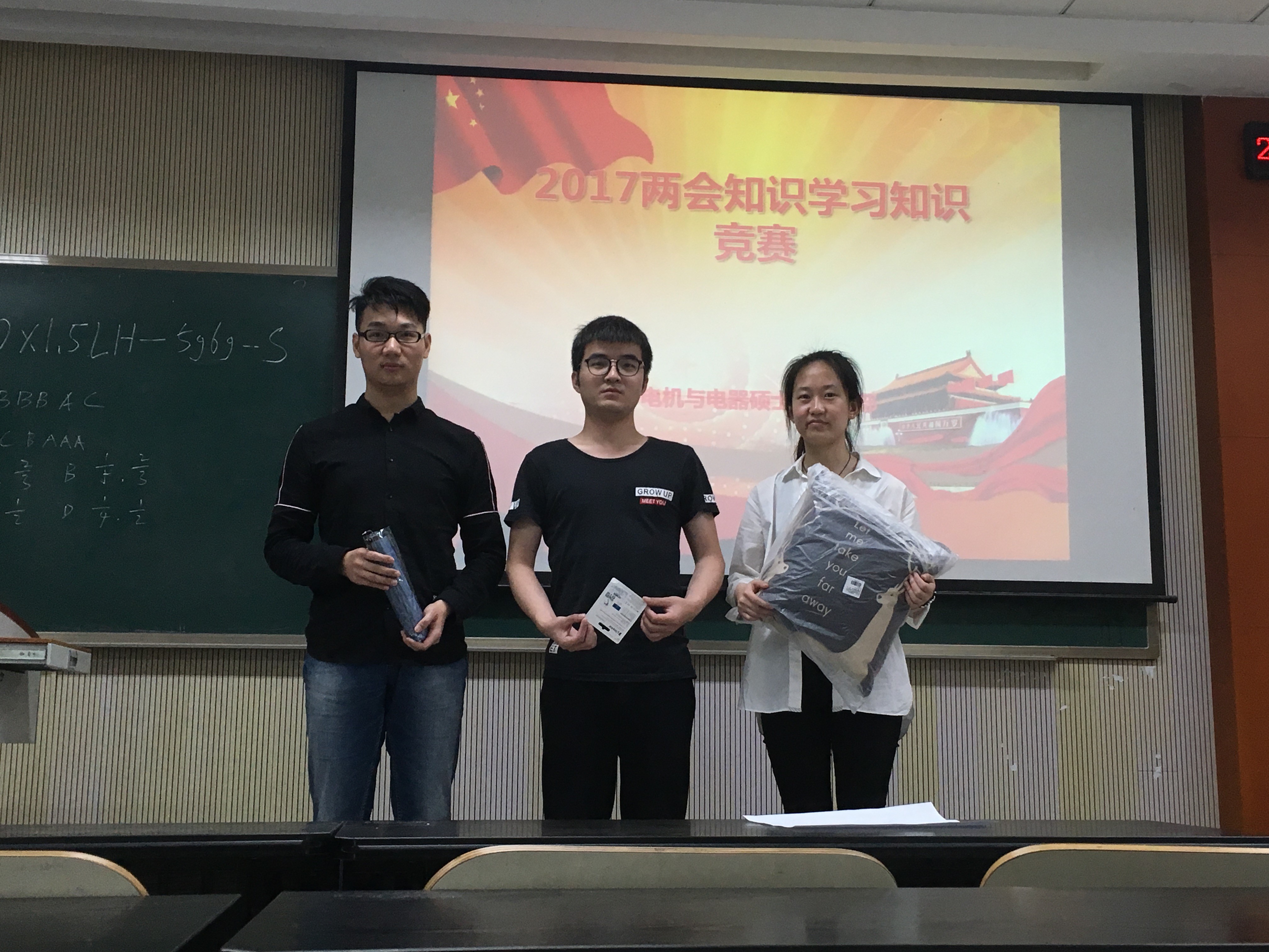 电机与电器硕士生党支部于2017年4月15日晚7点30在A区8教101教室组织开展了2017年两会知识学习及竞答活动。支部书记郑媚媚同志主持开展了此次党组织生活,支部正式党员、预备党员和入党积极分子积极参加了此次活动。
