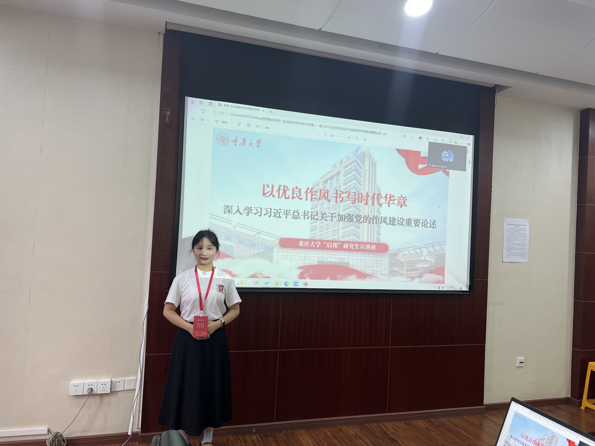 “启邦”研究生宣讲团讲师郭伶俐,为支部全体党员讲授“以优良作风书写时代华章——深入学习习近平总书记关于加强党的作风建设重要论述”专题党课。