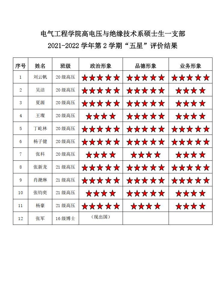 五楼自拍 高压四支部2021-2022学年第二学期“五星评价结果”