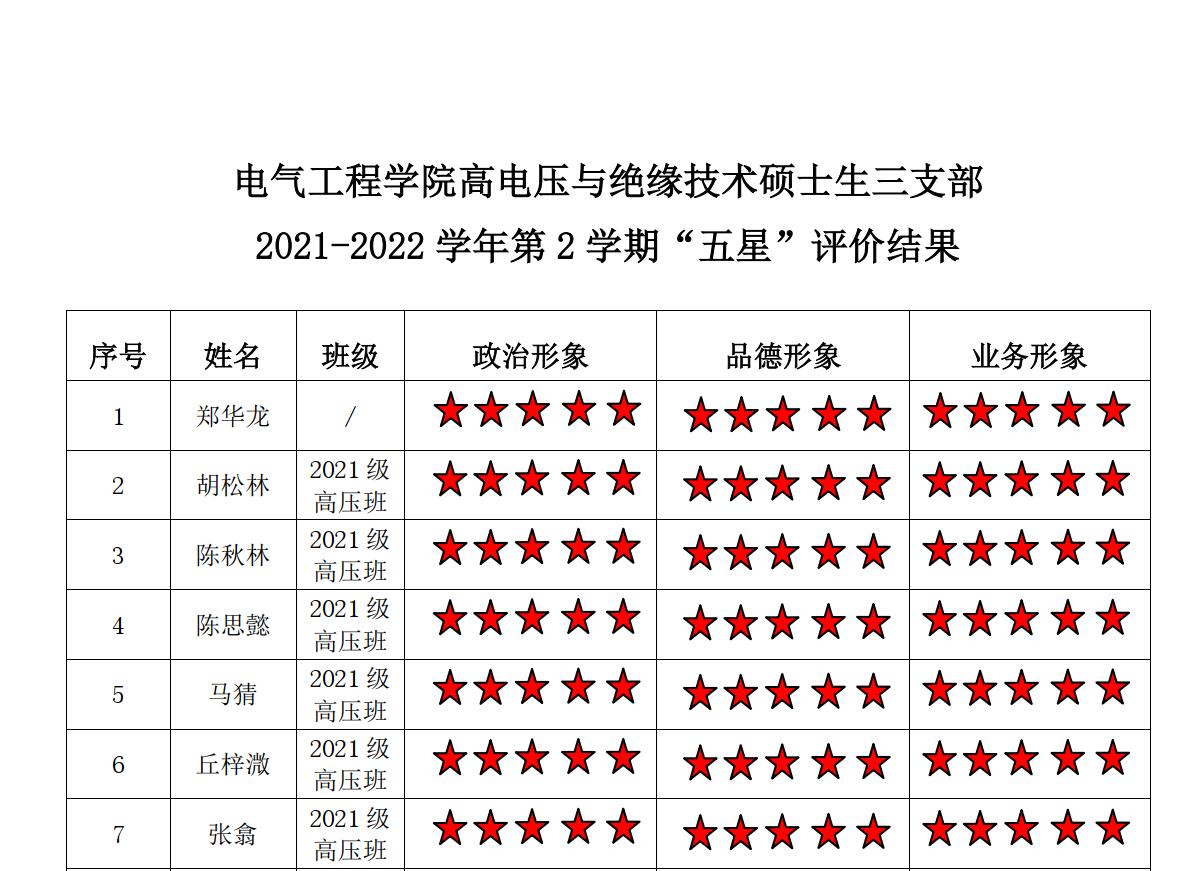 五楼自拍 高压四支部2021-2022学年第二学期“五星评价结果”