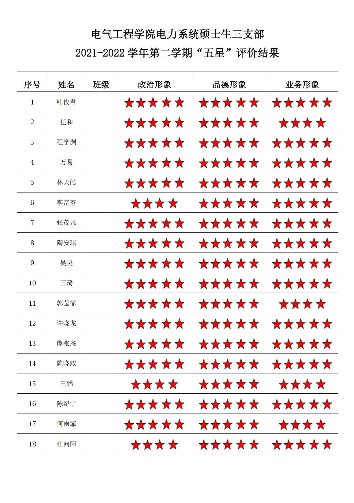 五楼自拍 电力系统二支部2021-2022学年第二学期“五星评价结果”