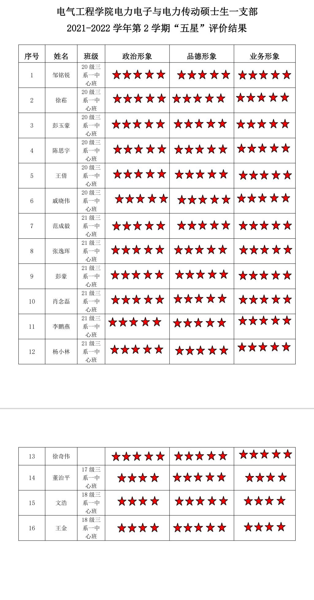 五楼自拍 电力电子一支部2021-2022学年第二学期“五星评价结果”