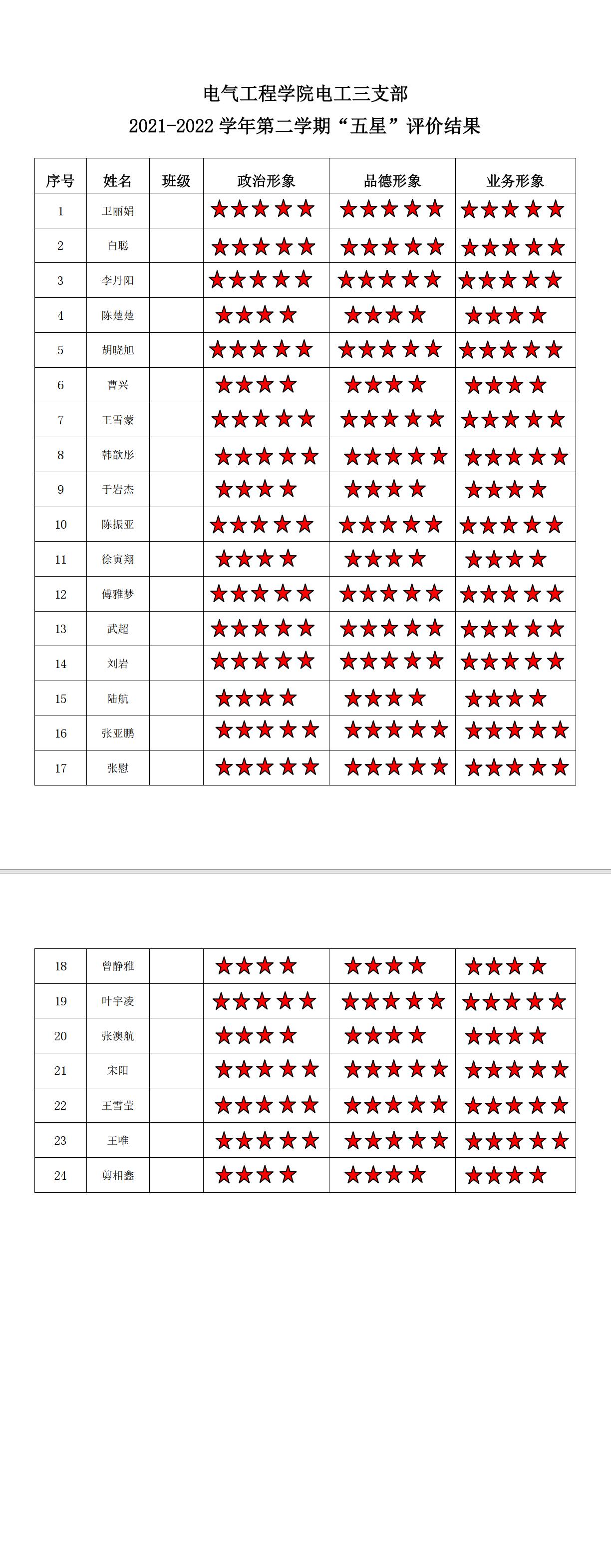 五楼自拍 电工一支部2021-2022学年第二学期“五星评价结果”