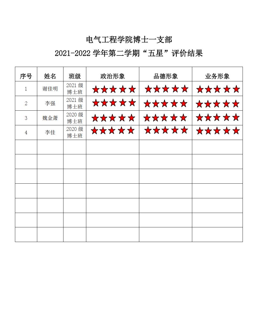 五楼自拍 博士生五支部2021-2022学年第二学期“五星评价结果”
