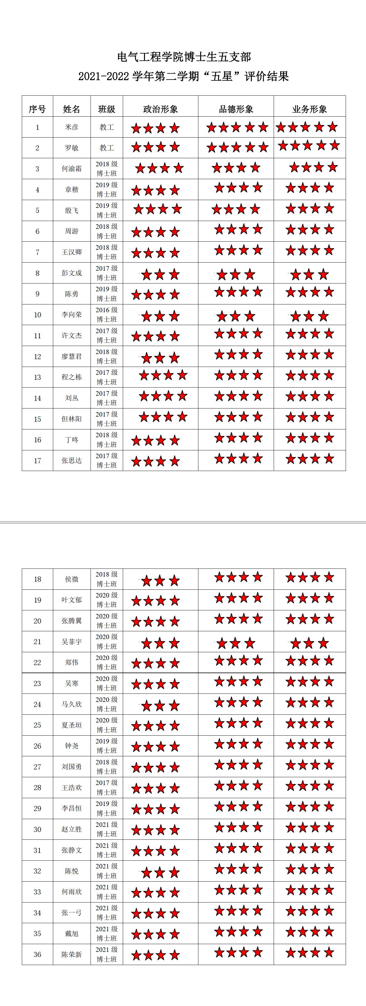 五楼自拍 博士生四支部2021-2022学年第二学期“五星评价结果”
