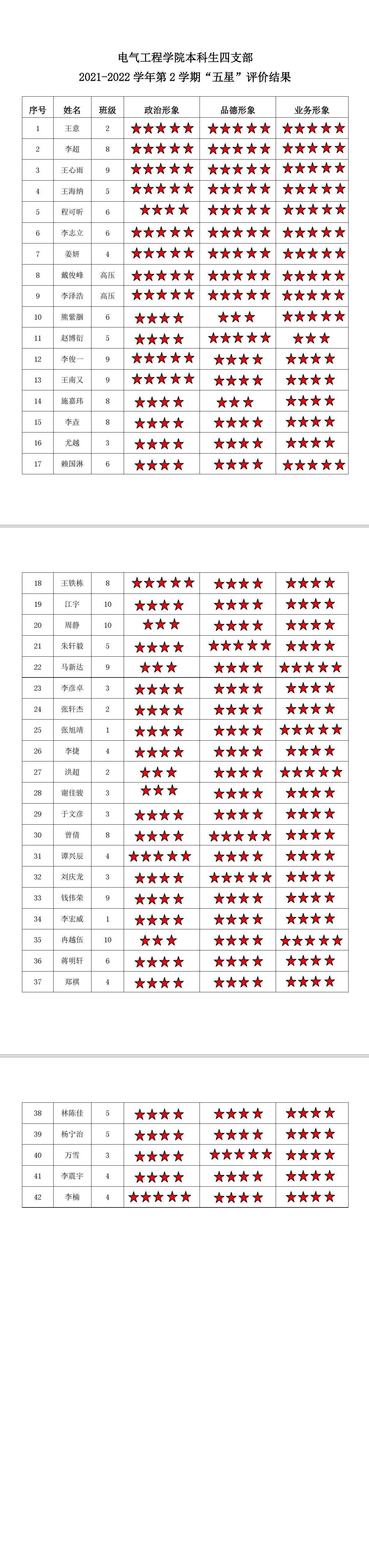 五楼自拍 本科生四支部2021-2022学年第2学期“五星”评价结果
