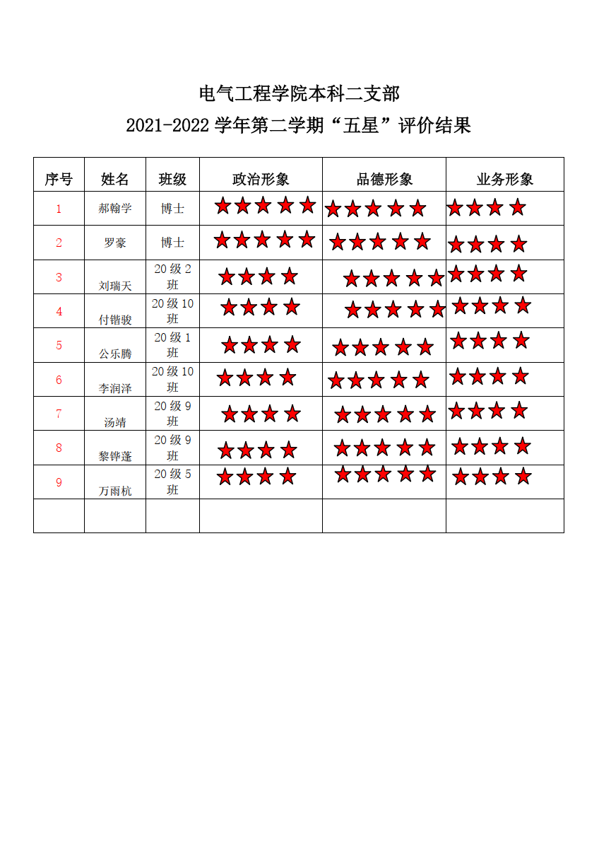 五楼自拍 本科生二支部2021-2022学年第二学期“五星评价结果”