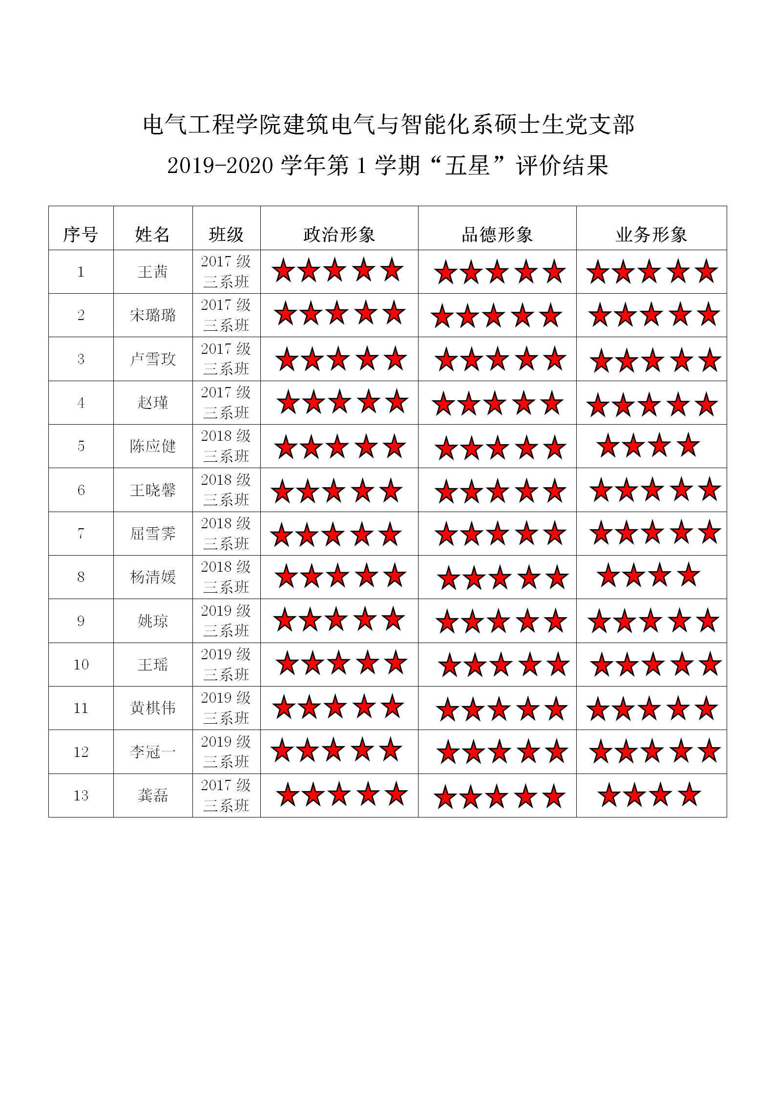 五楼自拍 建筑电气与智能化系硕士支部 2019-2020学年第1学期“五星”评价结果