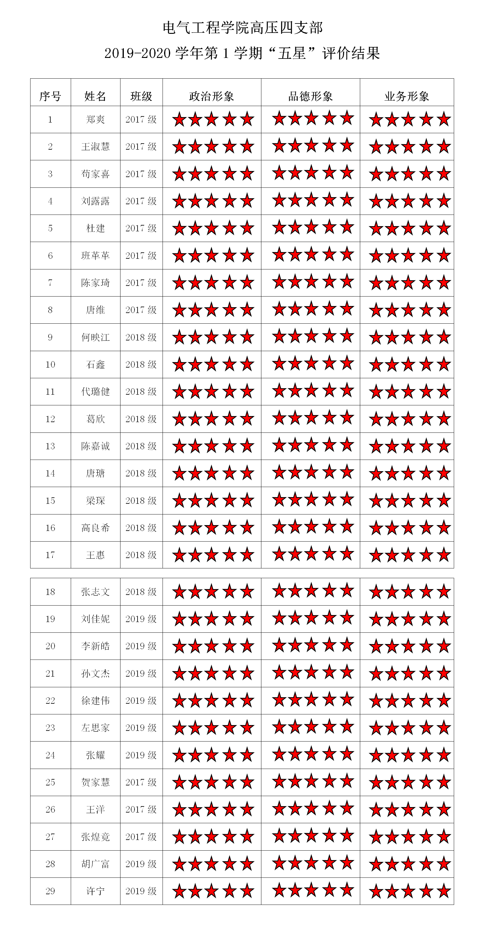 五楼自拍 高电压与绝缘技术第一支部 2019-2020学年第1学期“五星”评价结果
