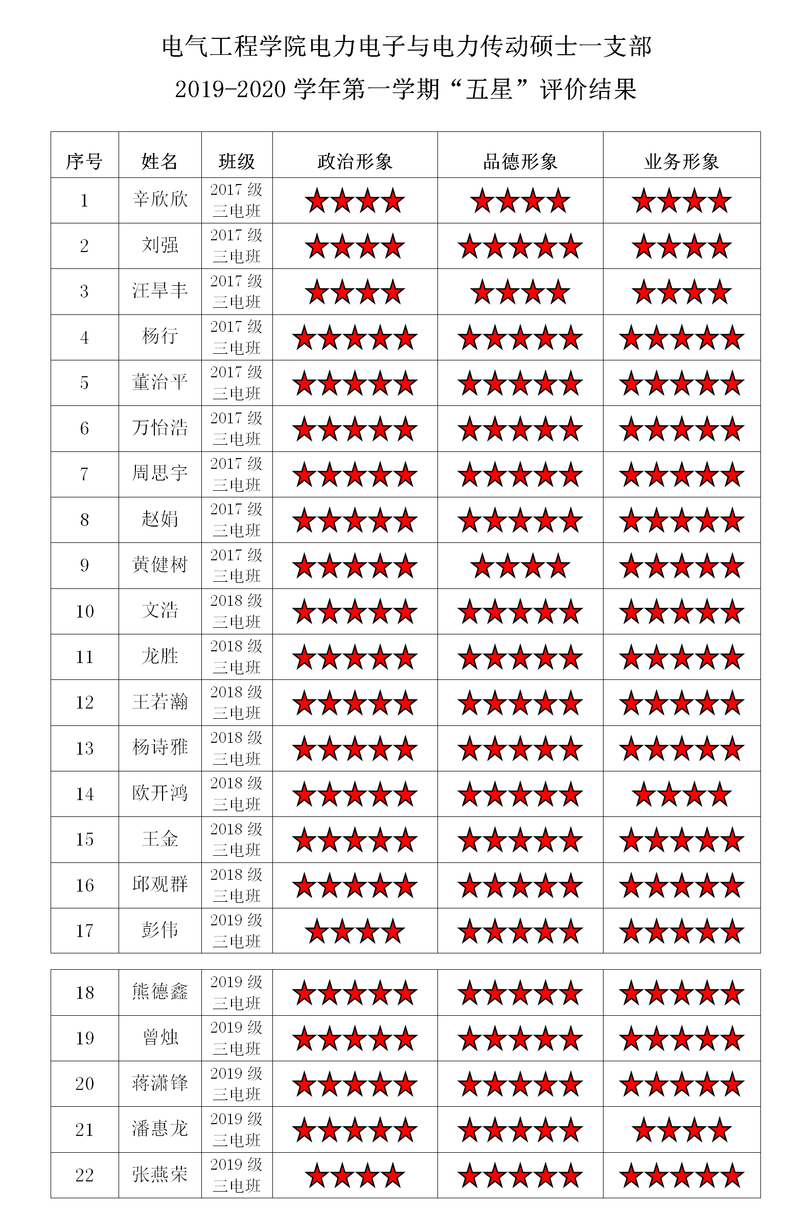 五楼自拍 电力电子系硕士第一支部 2019-2020学年第1学期“五星”评价结果