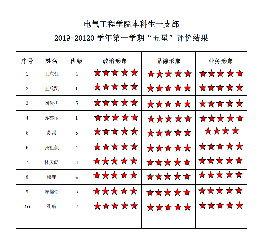 五楼自拍 本科生二支部2019-2020学年第一学期 “五星”评价结果
