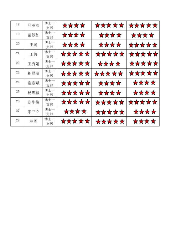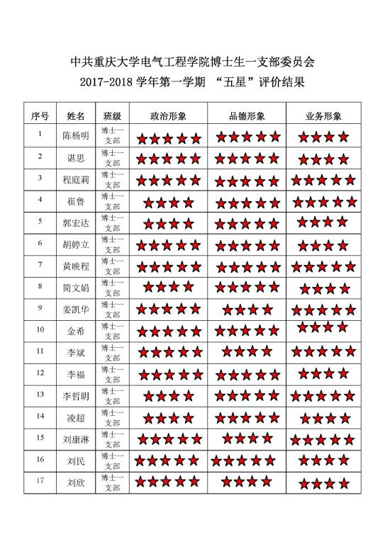 中共 五楼自拍 博士生一支部委员会 2017-2018学年第一学期 “五星”评价结果