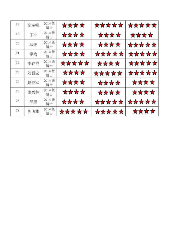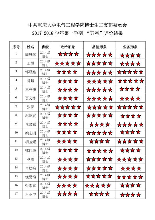 中共 五楼自拍 博士生二支部委员会 2017-2018学年第一学期 “五星”评价结果