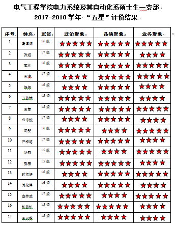 中共 五楼自拍 电力系统及其自动化系硕士生一支部2017-2018学年 “五星”评价结果