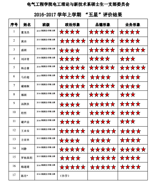 中共 五楼自拍 电工理论与新技术系硕士生二支部委员会2017-2018学年 “五星”评价结果