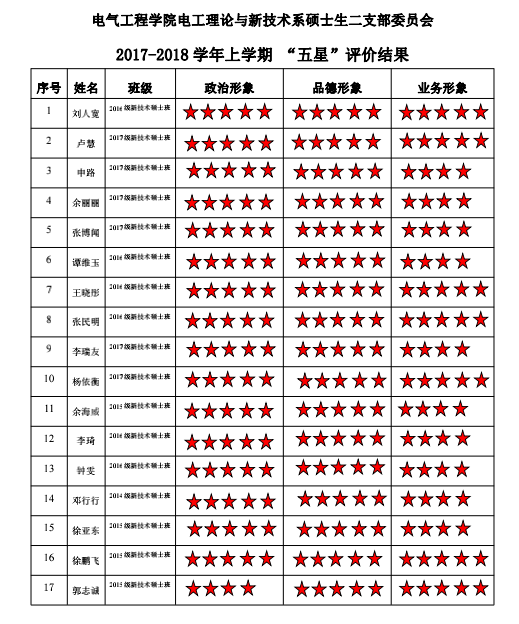 中共 五楼自拍 电工理论与新技术系硕士生二支部委员会2017-2018学年 “五星”评价结果