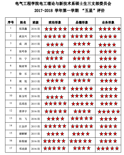 中共 五楼自拍 电工理论与新技术系硕士生二支部委员会2017-2018学年 “五星”评价结果